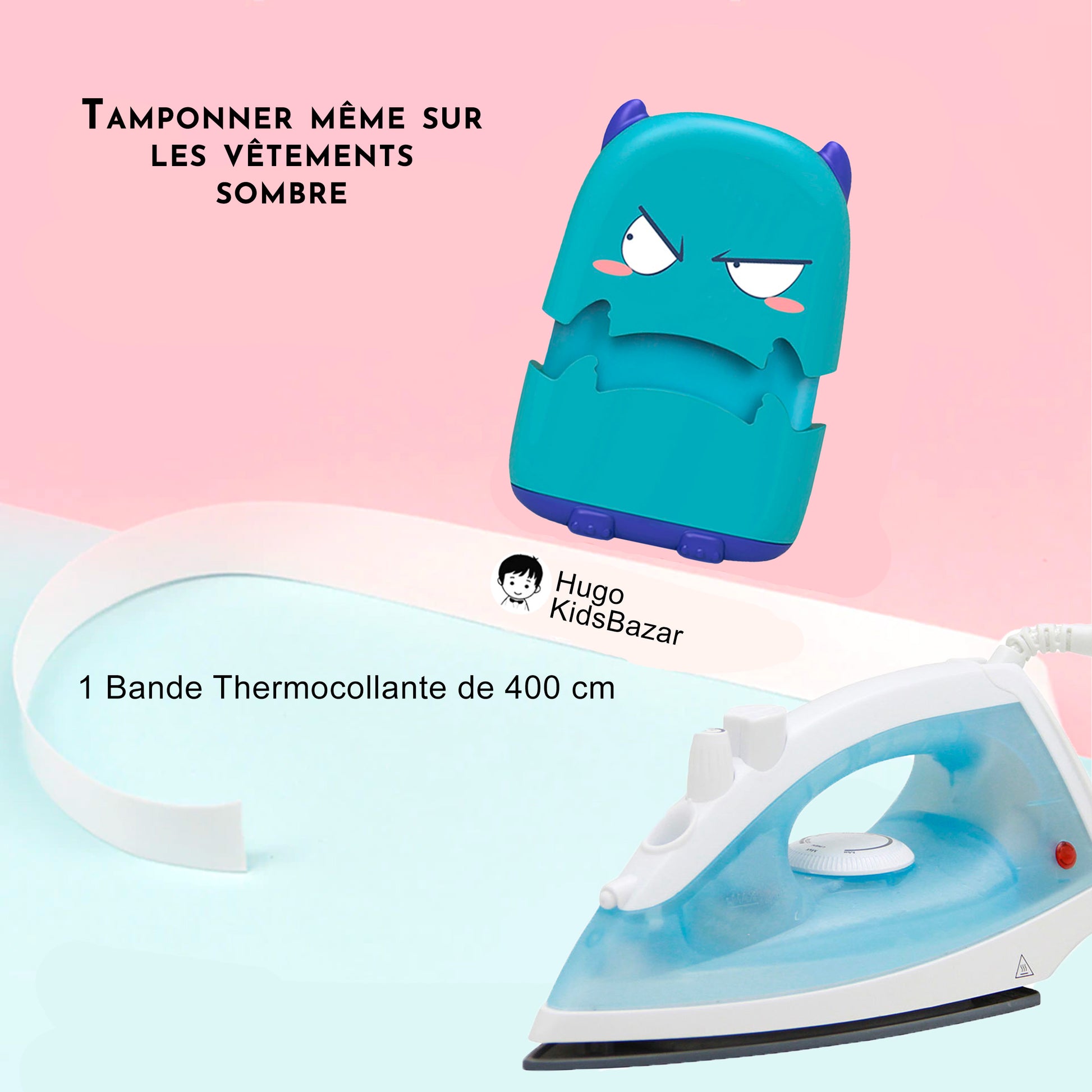 1 mètre de ruban en coton thermocollant OFFERT avec chaque commande ! La solution parfaite pour marquer les vêtements foncés de vos enfants avec nos tampons personnalisés.
